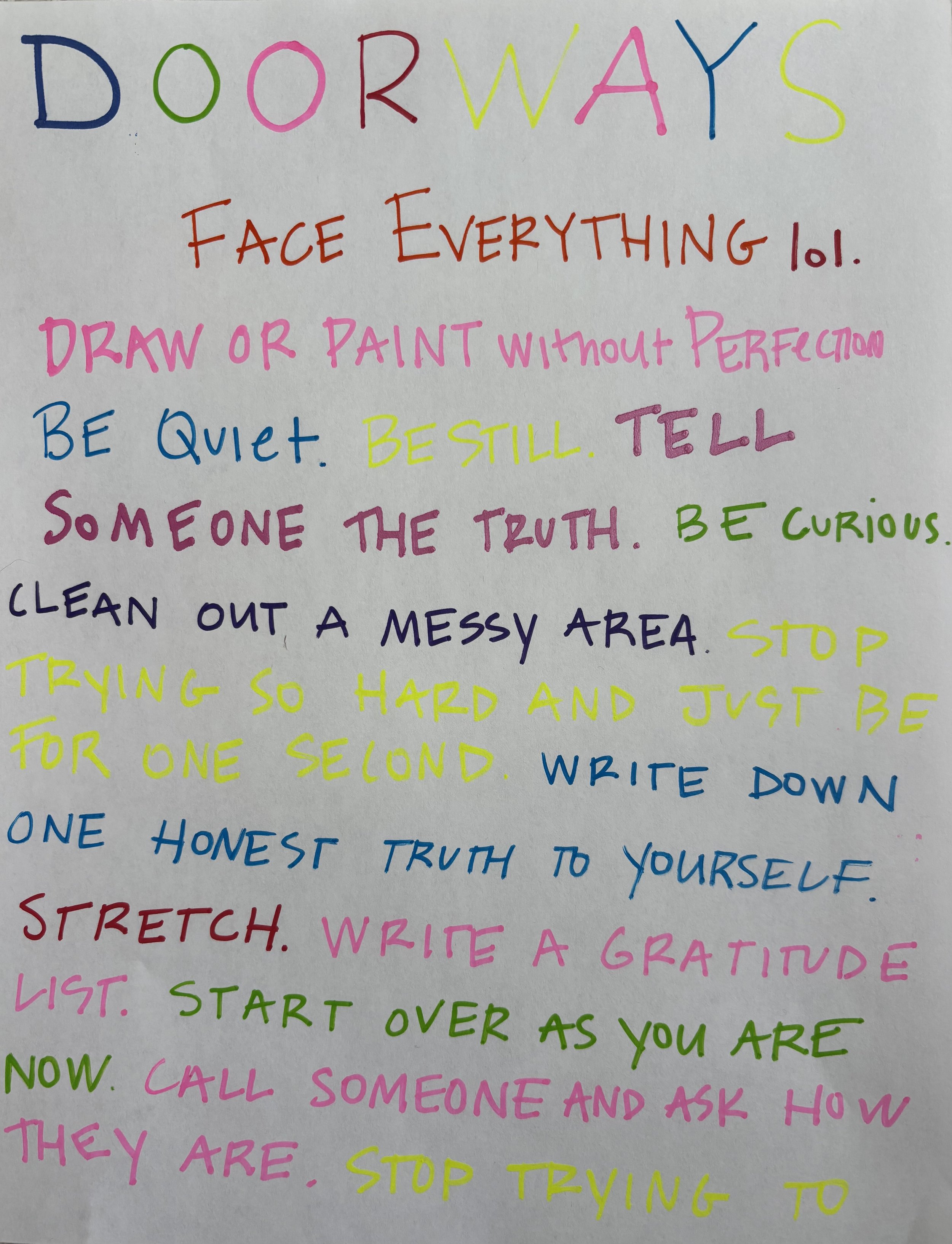 A few weeks ago I went into therapy and I talked about the horror of ICE for 15 minutes and then suddenly just said everything I had been afraid to say. I was like a burst pipe in winter, just gushing all the shameful things I was too scared to put into the narrative. My therapist looked at me calmly. I thought WTF is happening, but I am not going to stop because I’m tired of holding all this old junk. Then he said, well it’s so great that that is all making it’s way to the surface, and it’s way more organized than you think, or something like that. He certainly didn’t say, Oh jeez, you are way too gross and human to see next week, so nice knowing ya! On the way home I texted Tessa, wow I just let it rip in therapy. I was joking, but that’s what it felt like, like I ripped open another layer of my skin and said to a man I trust very much, look, look at this truth I hold about myself. I took it out and gave it some light so it could change shape. So that’s one doorway.